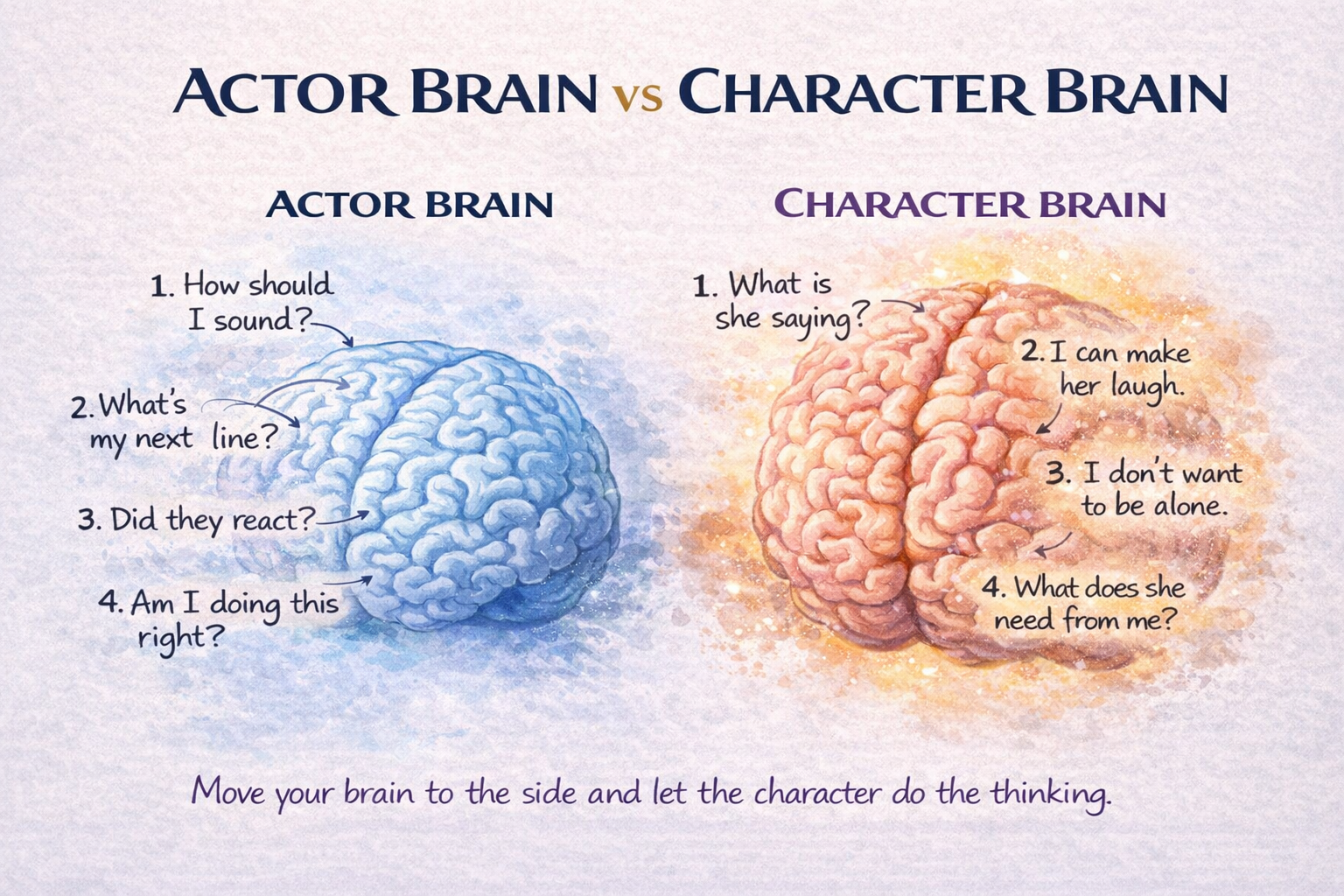 When actors focus on the character’s thinking, performances begin to organize themselves naturally.